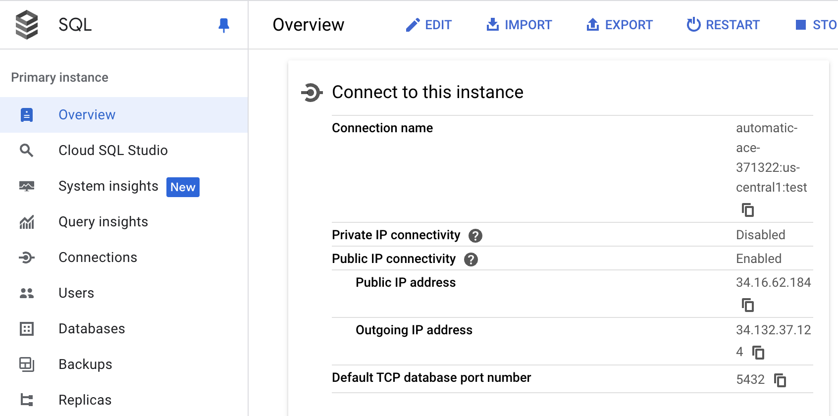 Step 1: Retrieve Google Cloud SQL Connection Details